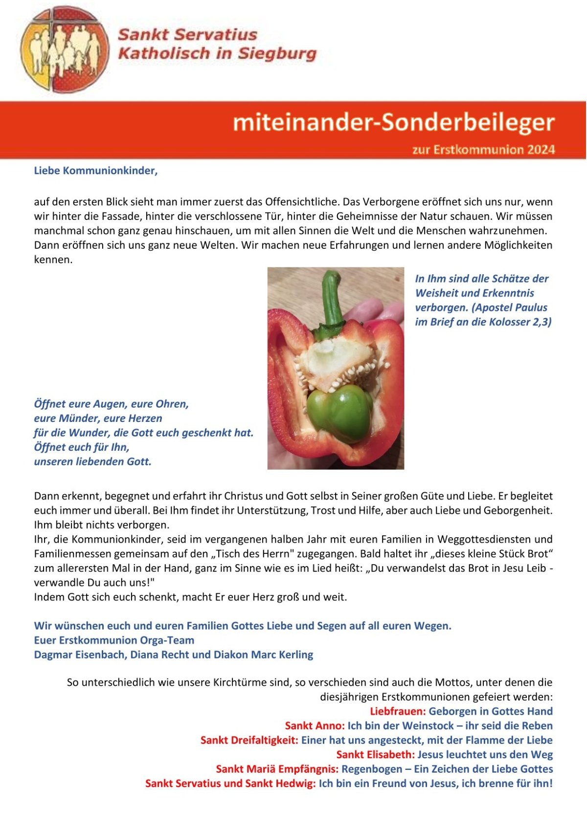 In monatlichen Weggottesdiensten werden die Kinder an die Heilige Messe herangeführt.