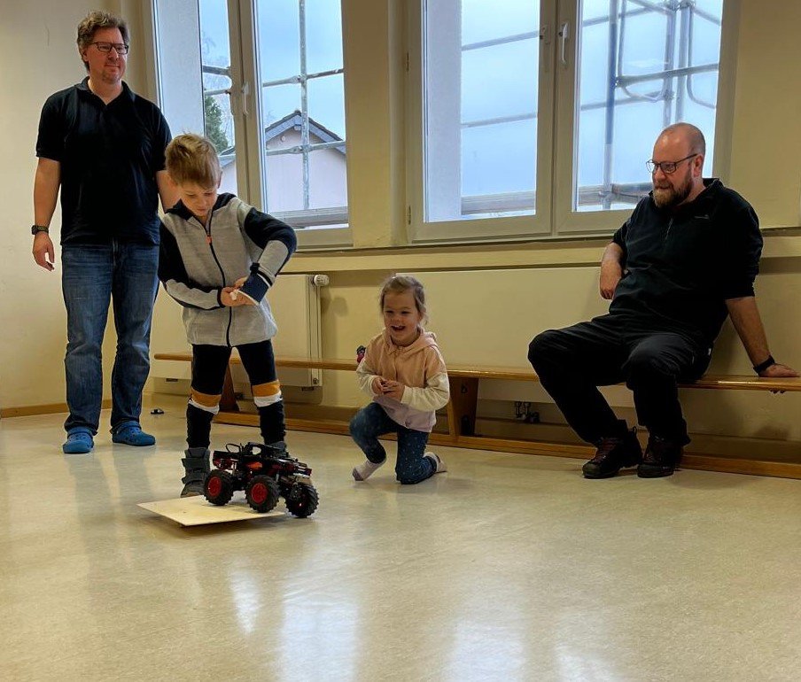 Auf den Fluren und im Bewegungsraum der Kita wurden anschließend die Fahrzeuge ausgiebig getestet. Alle hatten sehr viel Spaß miteinander. Ein besonderer Dank geht an den Leitungskollegen aus St. Augustin Herr Thomas Weiss, der den kleinen und großen Baumeistern mit seinem umfangreichen Baumaterial und seiner technischen Erfahrung zu Seite stand.